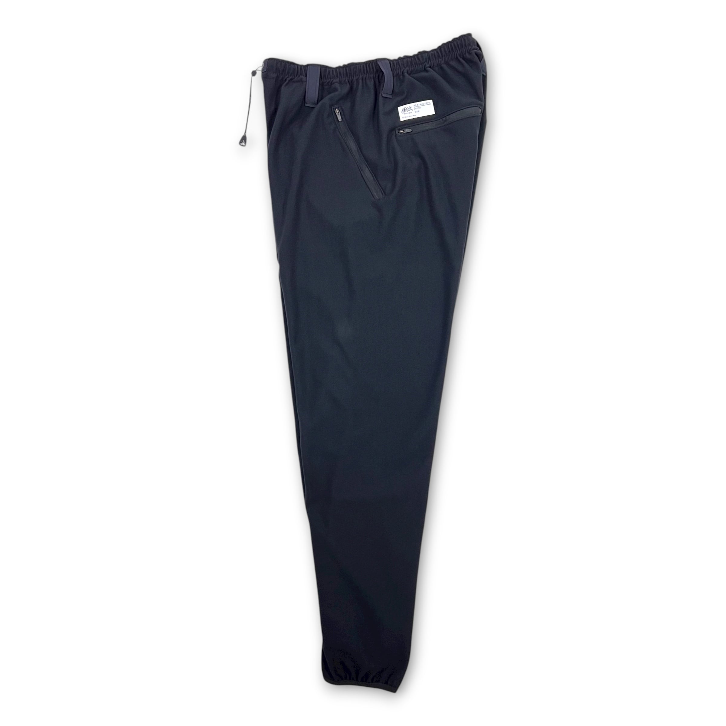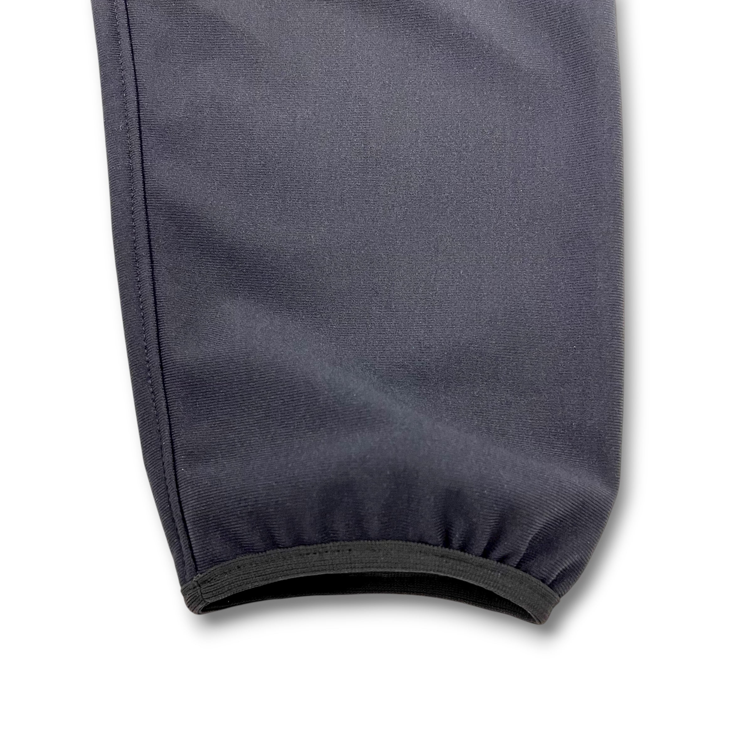 裏起毛のポリエステル生地を使用したスウェットパンツのナローシルエットタイプ。