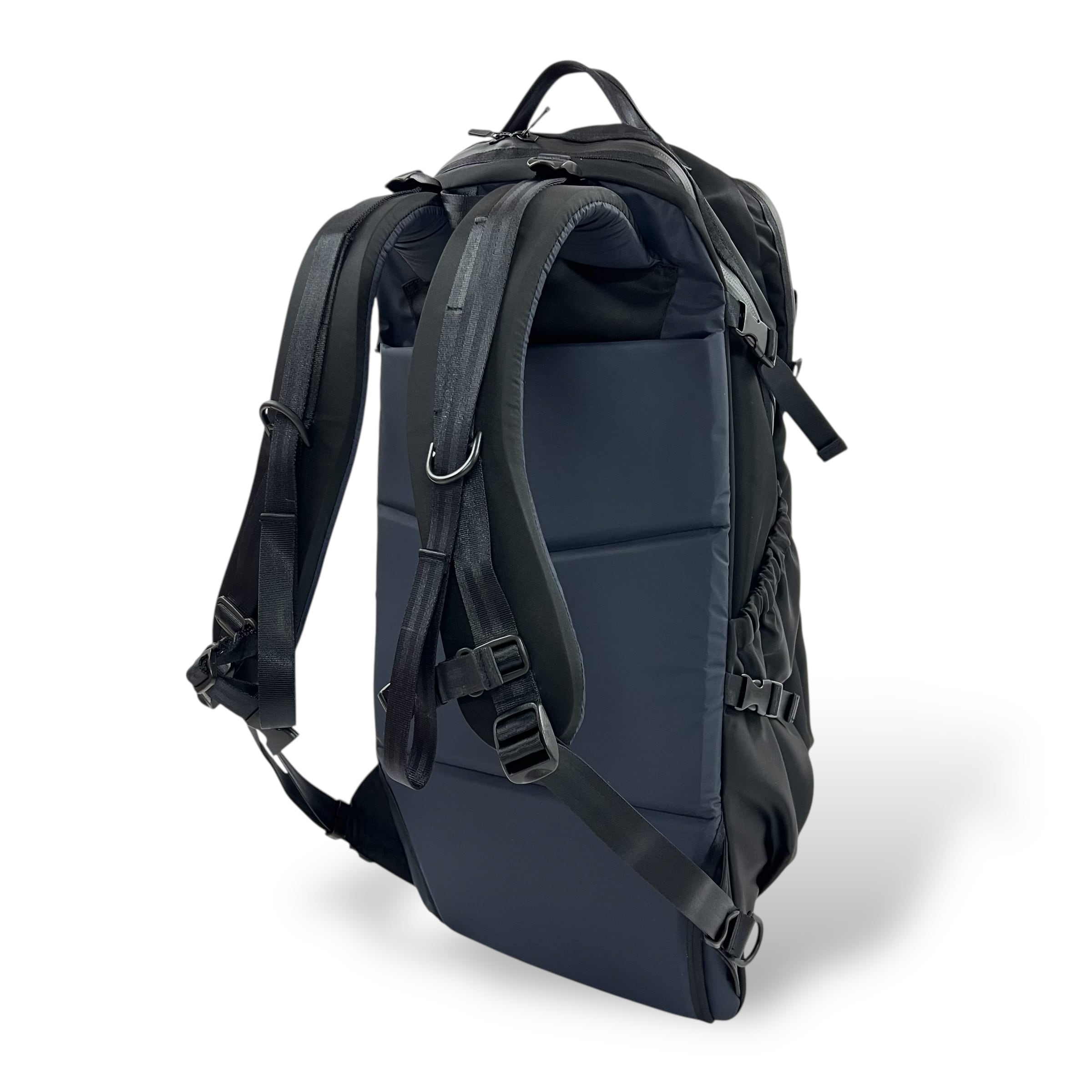 ショルダーパッドは低反発と高反発の2種類のウレタンクッションに硬質パネルを入れた三層構造になっています。背面パネルには高反発ウレタンクッションを使用。荷物が多い場合の負荷にも充分対応できる仕様になっています。